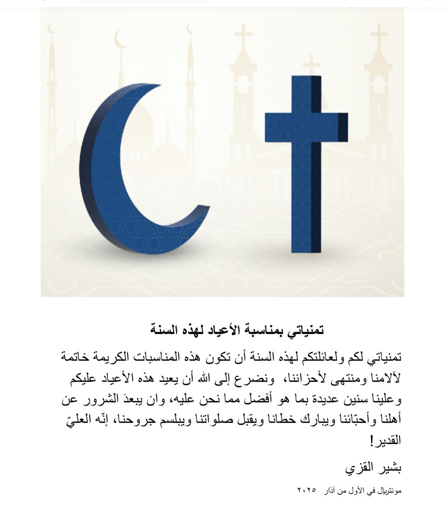 وفي هذه المناسبة أتمنى لكلّ من يقرأ نصي هذا،  ان يكون هذا العيد آخر ما يراه من ظلمٍ وافتراء في دنيانا  وان يكون الكرم في الأعياد المقبلة متجلّيا بروح المحبة والإخلاص لكلّ ما خلقه الله على هذه البسيطة…